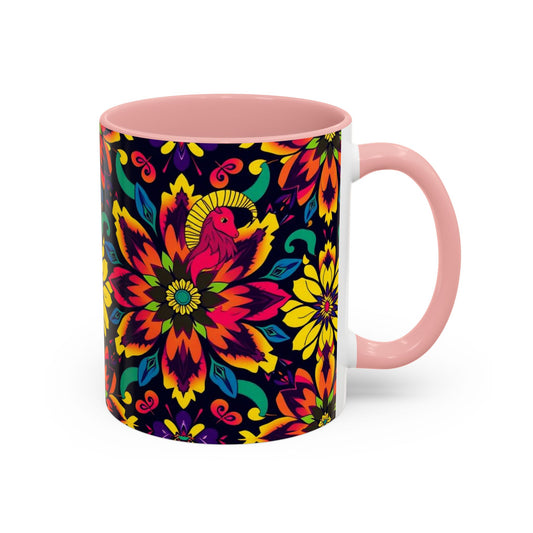 Accent Coffee Mug, Leo, Zodiac v4, Flower Pattern, (11, 15oz)