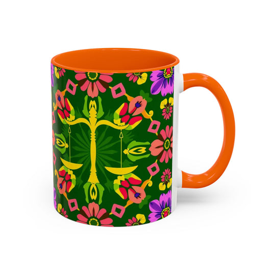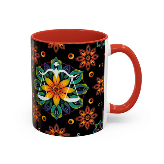 Accent Coffee Mug, Libra, Zodiac v1, Flower Pattern, (11, 15oz)