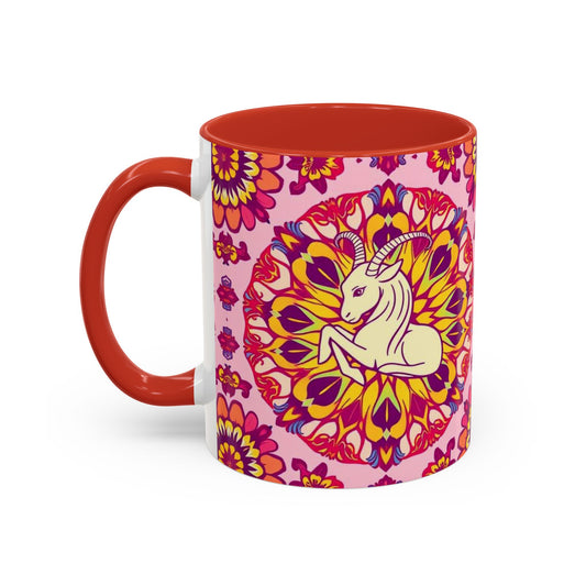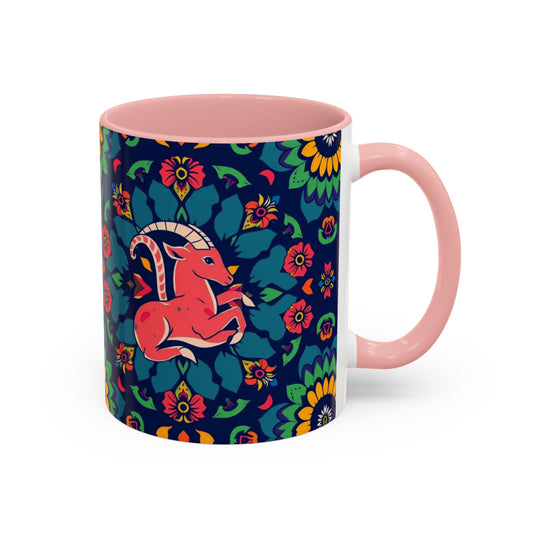 Accent Coffee Mug, Capricorn, Zodiac v2, Flower Pattern, (11, 15oz)