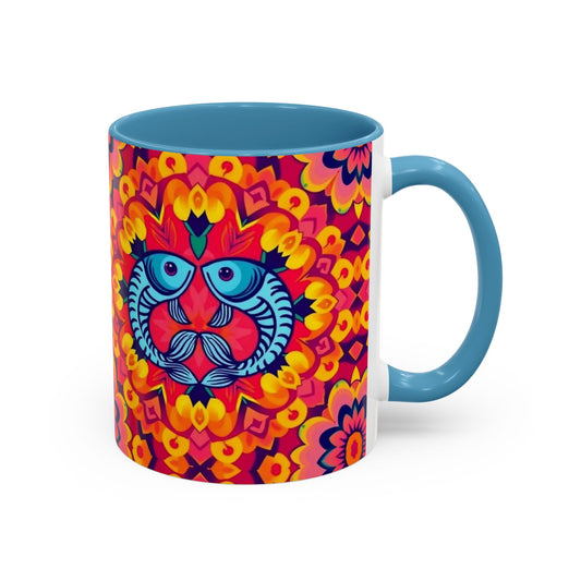 Accent Coffee Mug, Pisces, Zodiac v1, Flower Pattern, (11, 15oz)