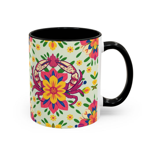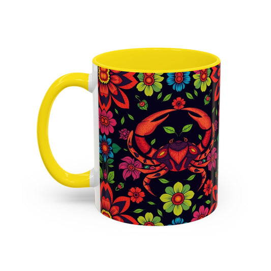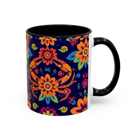Accent Coffee Mug, Cancer, Zodiac v4, Flower Pattern, (11, 15oz)