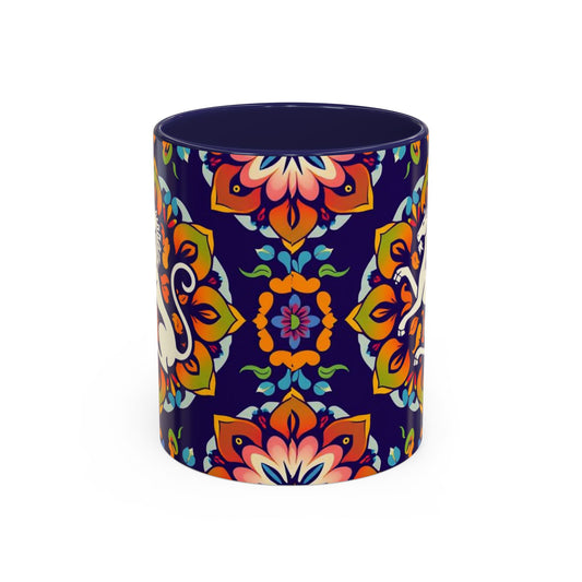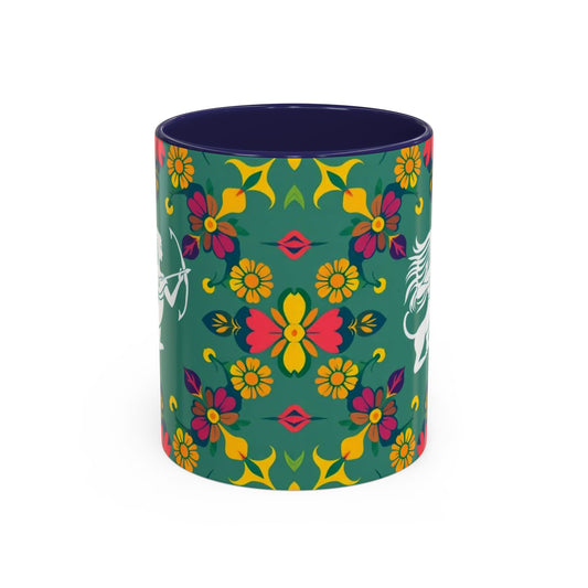 Accent Coffee Mug, Sagittarius, Zodiac. Flower Pattern, (11, 15oz)