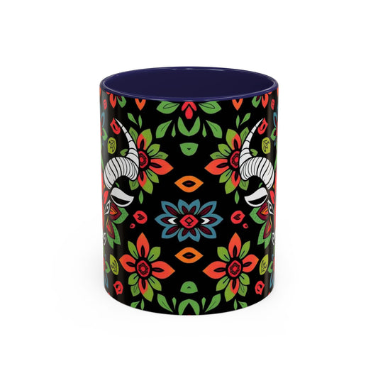 Accent Coffee Mug, Taurus, Zodiac. Flower Pattern, (11, 15oz)