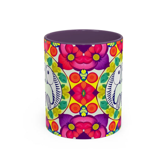 Accent Coffee Mug, Pisces, Zodiac v3, Flower Pattern, (11, 15oz)