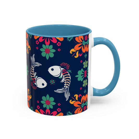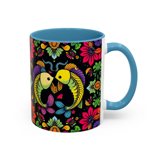 Accent Coffee Mug, Pisces, Zodiac v4, Flower Pattern, (11, 15oz)