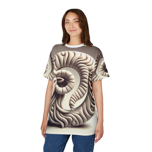 Unisex Cut & Sew T-Shirt (AOP), Stone Carving, Aries Zodiac Design, Regular fit, 100% Polyester