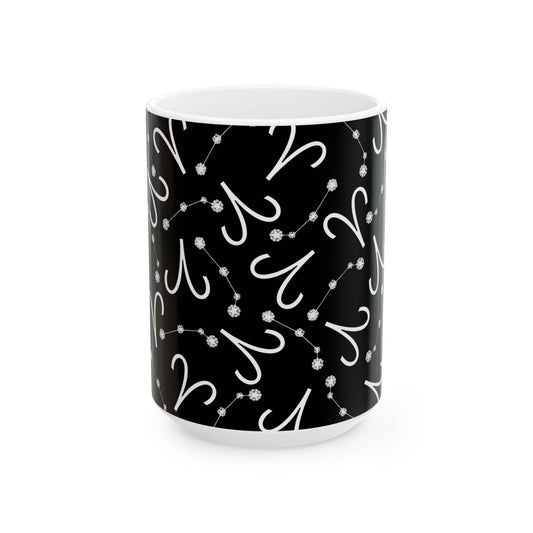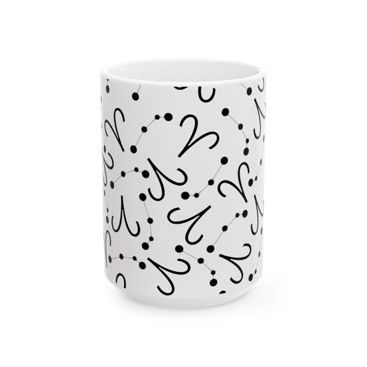Ceramic Mug, (11oz, 15oz), Ceramic Coffee Mug, AOP, Constellation & Symbol, Aries Zodiac Design