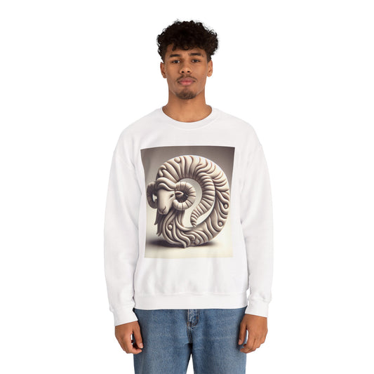 Unisex Heavy Blend™ Crewneck Sweatshirt, Round Statue, Aries Zodiac Design