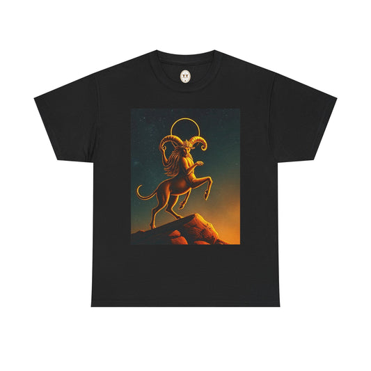 Unisex Heavy Cotton T-Shirt, Mountain Top, Aries Zodiac Design