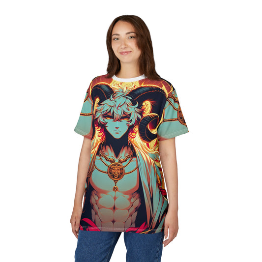 Unisex Cut & Sew T-Shirt (AOP), Anime Character, Aries Zodiac Design, Regular fit, 100% Polyester
