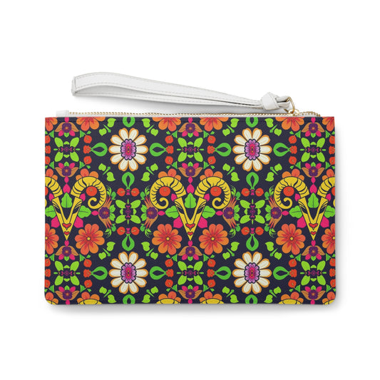 Clutch Bag, Aries, Zodiac v3, Flower Pattern