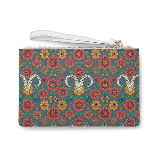Clutch Bag, Aries, Zodiac v2, Flower Pattern