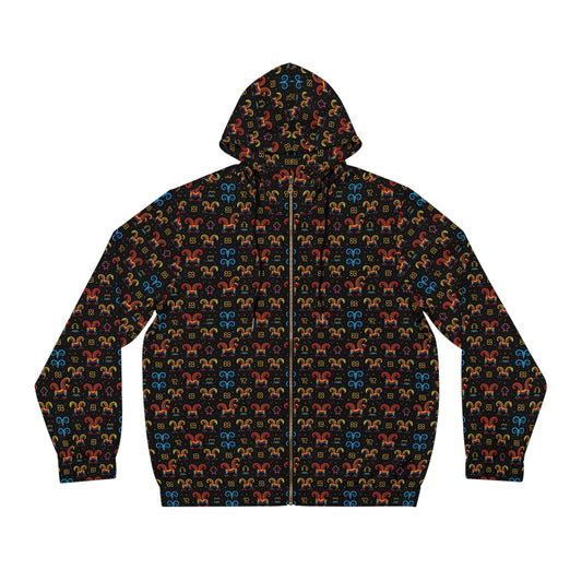 Full-Zip Hoodie (AOP), Aries, Zodiac, Pattern