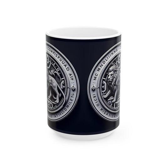 Ceramic Mug, (11oz, 15oz), Ceramic Coffee Mug, Sliver Lion, Leo Zodiac Design