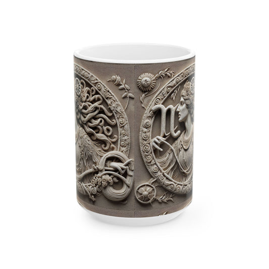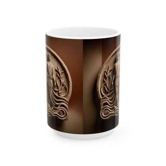 Ceramic Mug, (11oz, 15oz), Ceramic Coffee Mug, Woman Stone Carving, Virgo Zodiac Design