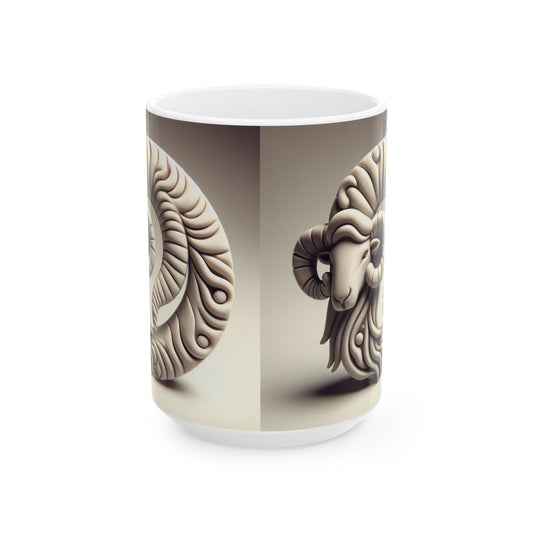 Ceramic Mug, (11oz, 15oz), Ceramic Coffee Mug, Stone Circle, Aries Zodiac Design