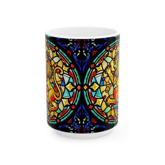 Ceramic Mug, (11oz, 15oz), Glass Design v1, AOP, Leo Zodiac Sign