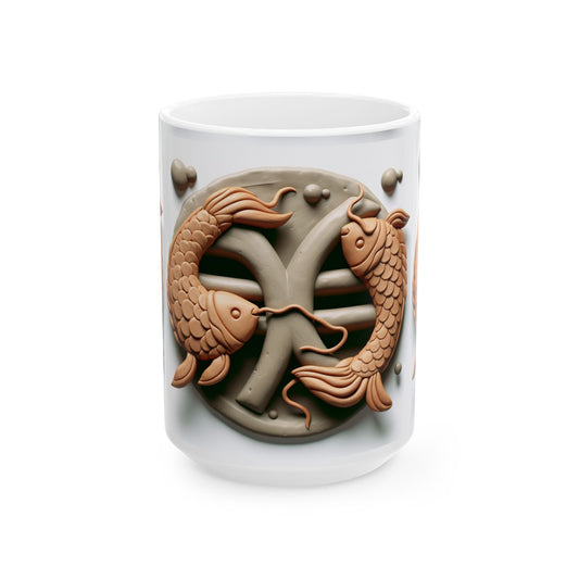 Ceramic Mug, (11oz, 15oz), Ceramic Coffee Mug, Pisces Fish, Zodiac Design