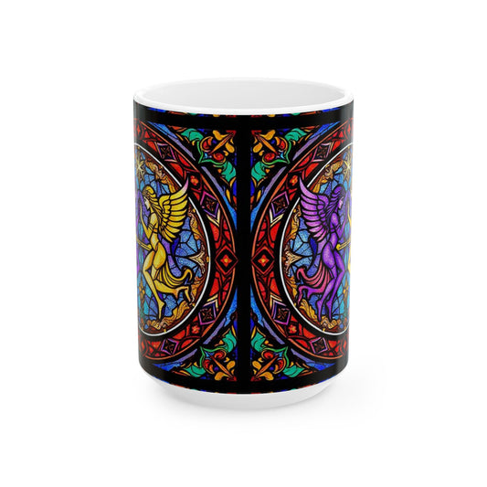 Ceramic Mug, (11oz, 15oz), Ceramic Coffee Mug, AOP, Glass Design v1, Gemini Zodiac