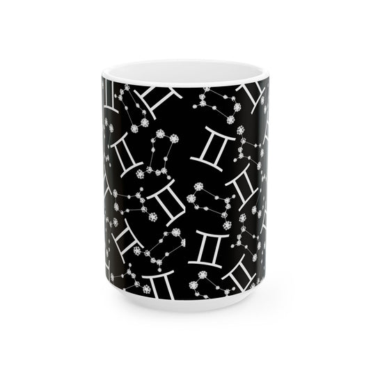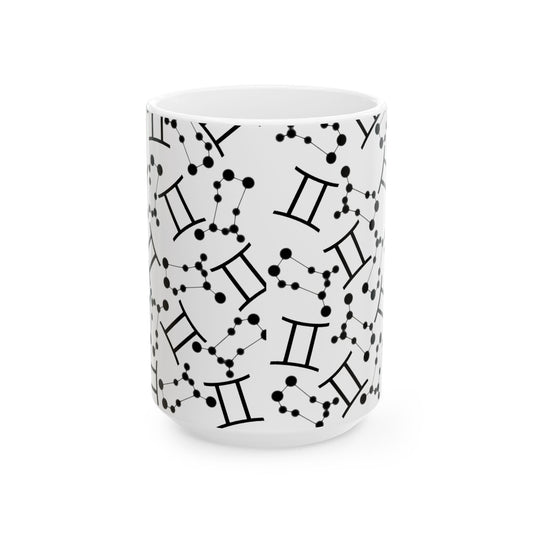 Ceramic Mug, (11oz, 15oz), Ceramic Coffee Mug, AOP, Constellation & Symbol, Gemini Zodiac Design