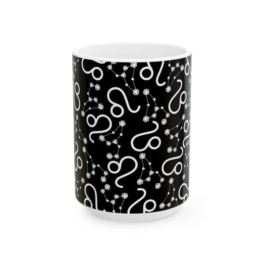 Ceramic Mug, (11oz, 15oz), Ceramic Coffee Mug, Black AOP, Leo Zodiac Design