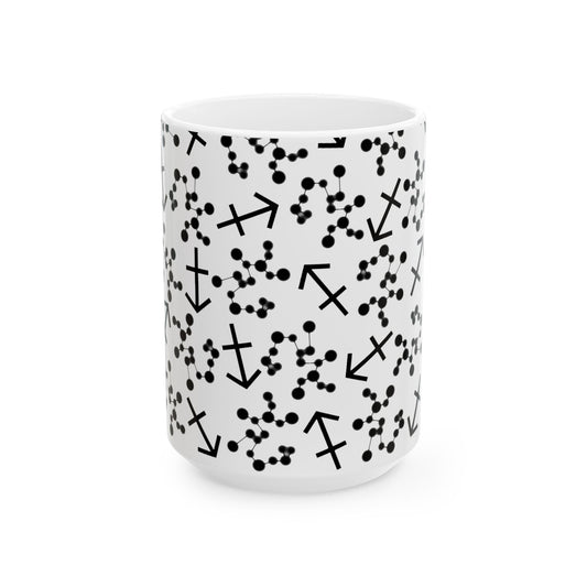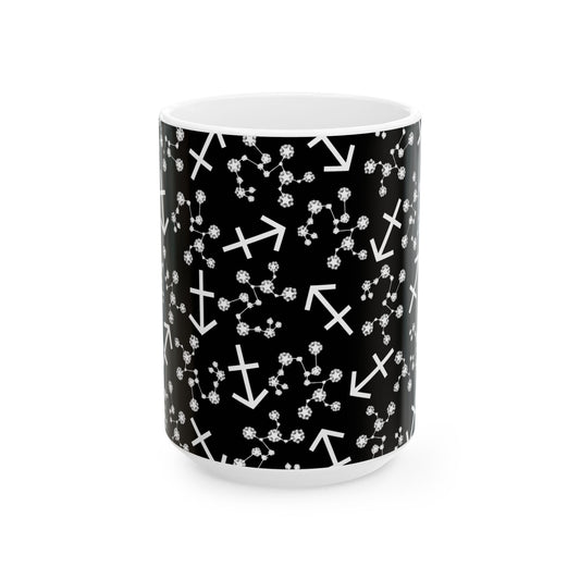 Ceramic Mug, (11oz, 15oz), Ceramic Coffee Mug, AOP, Constellation & Symbol, Sagittarius Zodiac Design