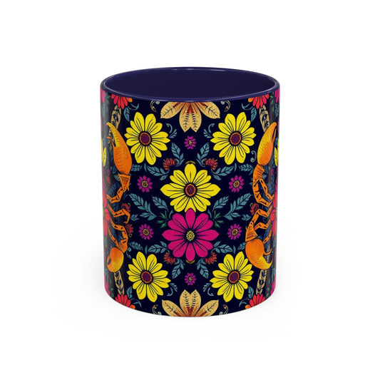 Accent Coffee Mug, Scorpio, Zodiac. Flower Pattern, (11, 15oz)