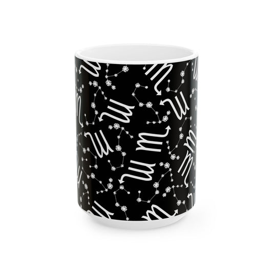 Ceramic Mug, (11oz, 15oz), Ceramic Coffee Mug, AOP, Constellation & Symbol, Scorpio Zodiac Design