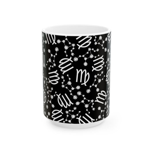 Ceramic Mug, (11oz, 15oz), Ceramic Coffee Mug, AOP, Constellation & Symbol, Virgo Zodiac Design