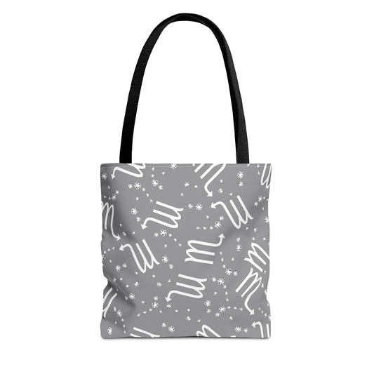 Tote Bag, Scorpio Zodiac Sign, AOP, (Grey, White)