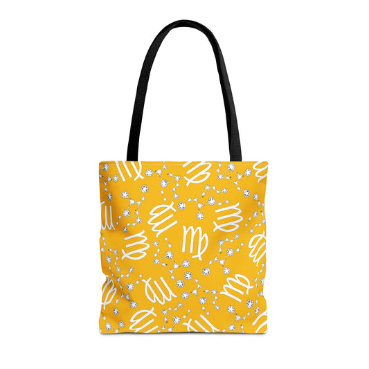 Tote Bag, Virgo Zodiac Sign, AOP, (Yellow White)