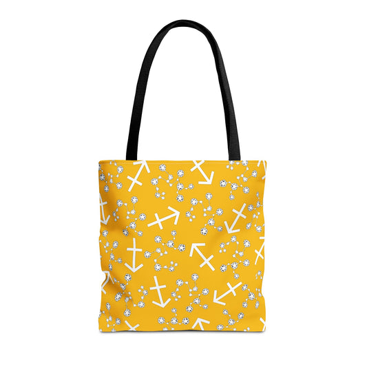 Tote Bag, Sagittarius Zodiac Sign, AOP, (Yellow, White Print)