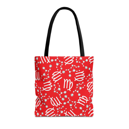 Tote Bag, Virgo Zodiac Sign, AOP, (Red, White)