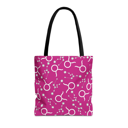Tote Bag, Taurus Zodiac Sign, AOP, (Pink, White)
