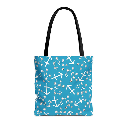 Tote Bag, Sagittarius Zodiac Sign, AOP, (Turquoise, White Print)