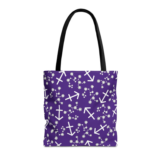 Tote Bag, Sagittarius Zodiac Sign, AOP, (Purple, White Print)