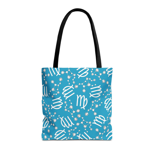 Tote Bag, Virgo Zodiac Sign, AOP, (Turquoise, White)