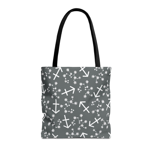 Tote Bag, Sagittarius Zodiac Sign, AOP, (Grey, White Print)
