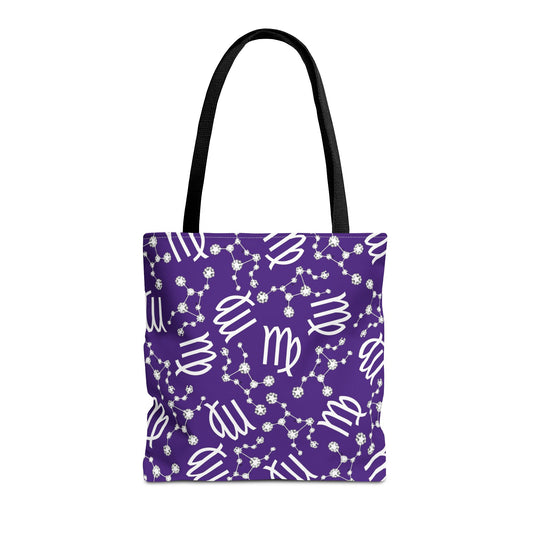 Tote Bag, Virgo Zodiac Sign, AOP, (Purple, White)