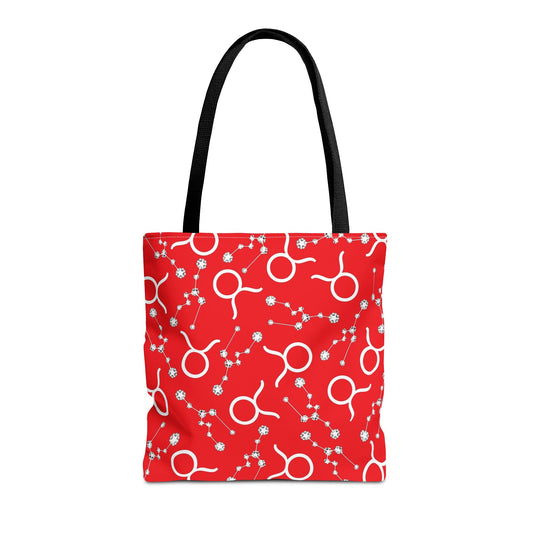 Tote Bag, Taurus Zodiac Sign, AOP, (Red, White)