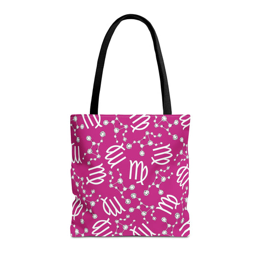 Tote Bag, Virgo Zodiac Sign, AOP, (Pink, White)