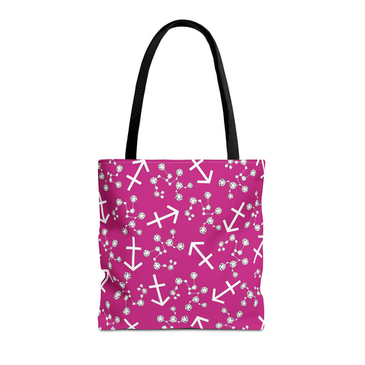 Tote Bag, Sagittarius Zodiac Sign, AOP, (Pink, White Print)