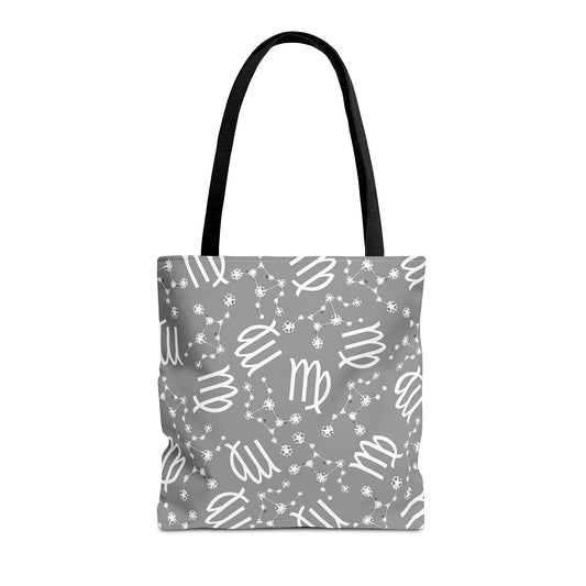 Tote Bag, Virgo Zodiac Sign, AOP, (Grey, White)