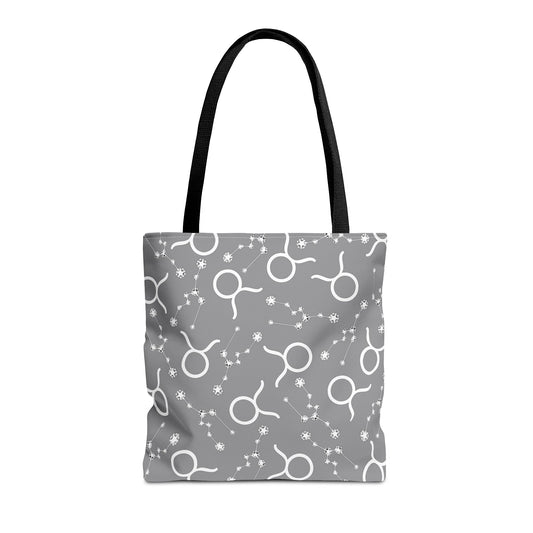 Tote Bag, Taurus Zodiac Sign, AOP, (Grey, White)