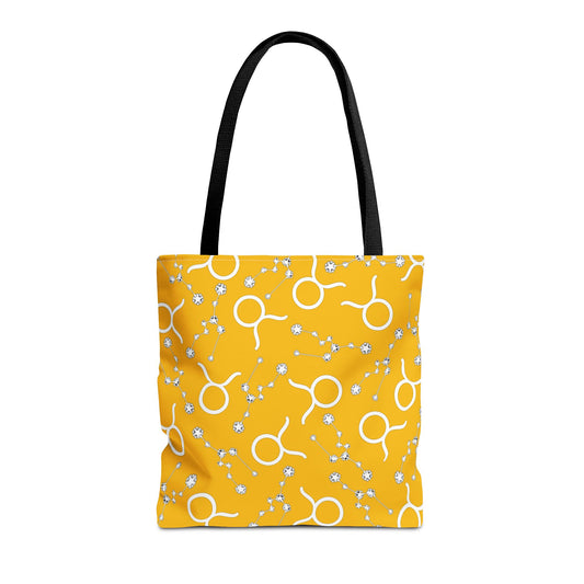 Tote Bag, Taurus Zodiac Sign, AOP, (Yellow, White)
