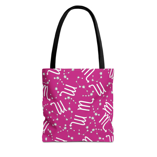 Tote Bag, Scorpio Zodiac Sign, AOP, (Pink, White)