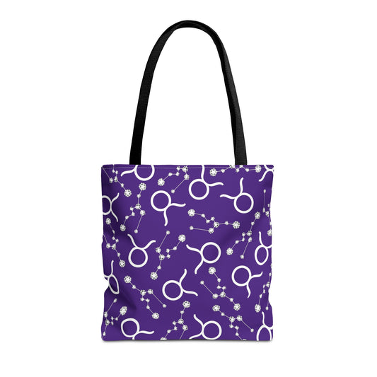Tote Bag, Taurus Zodiac Sign, AOP, (Purple, White)