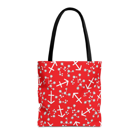 Tote Bag, Sagittarius Zodiac Sign, AOP, (Red, White Print)