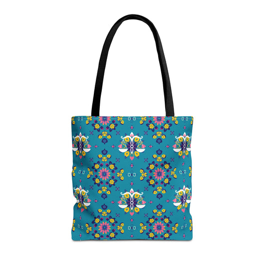 Tote Bag (AOP), Libra, Zodiac v2, Flower Pattern