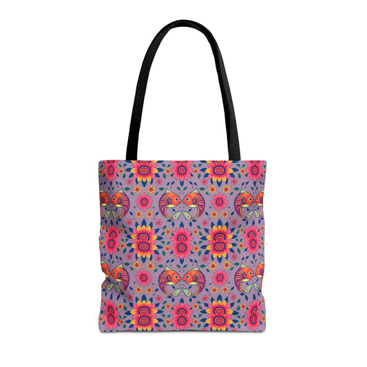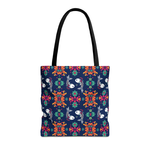 Tote Bag (AOP), Pisces, Zodiac v2, Flower Pattern